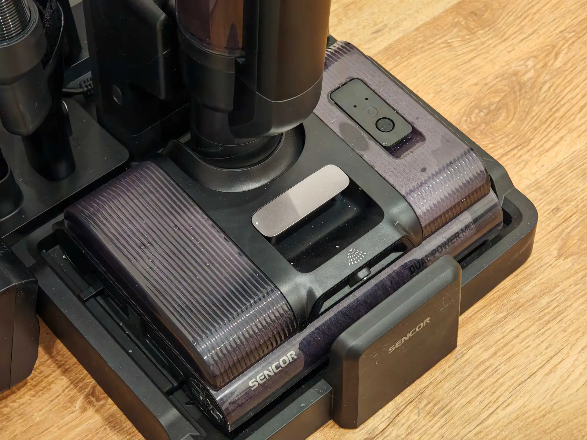 Po skončení mokrého upratovania stačí Sencor S88 Aquino+ umiestniť do dokovacej stanice a tlačidlom spustiť automatické čistenie. Obe kefy sa automaticky vyperú, vyžmýkajú, vysávač odsaje prebytočnú vodu do odpadovej nádobky a stanica valce vysuší pri teplote 70 °C. Vďaka tomu by sa mal znížiť počet prežívajúcich baktérií a eliminovať zápach mopovacích valcov. Raz za čas ich potom odporúčam ručne preprať v umývadle s trochou čistiaceho prostriedku.