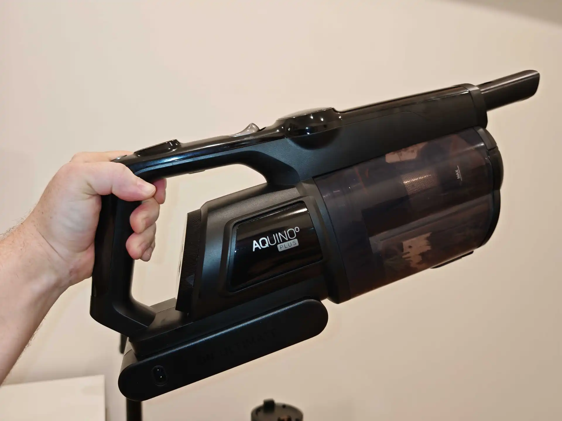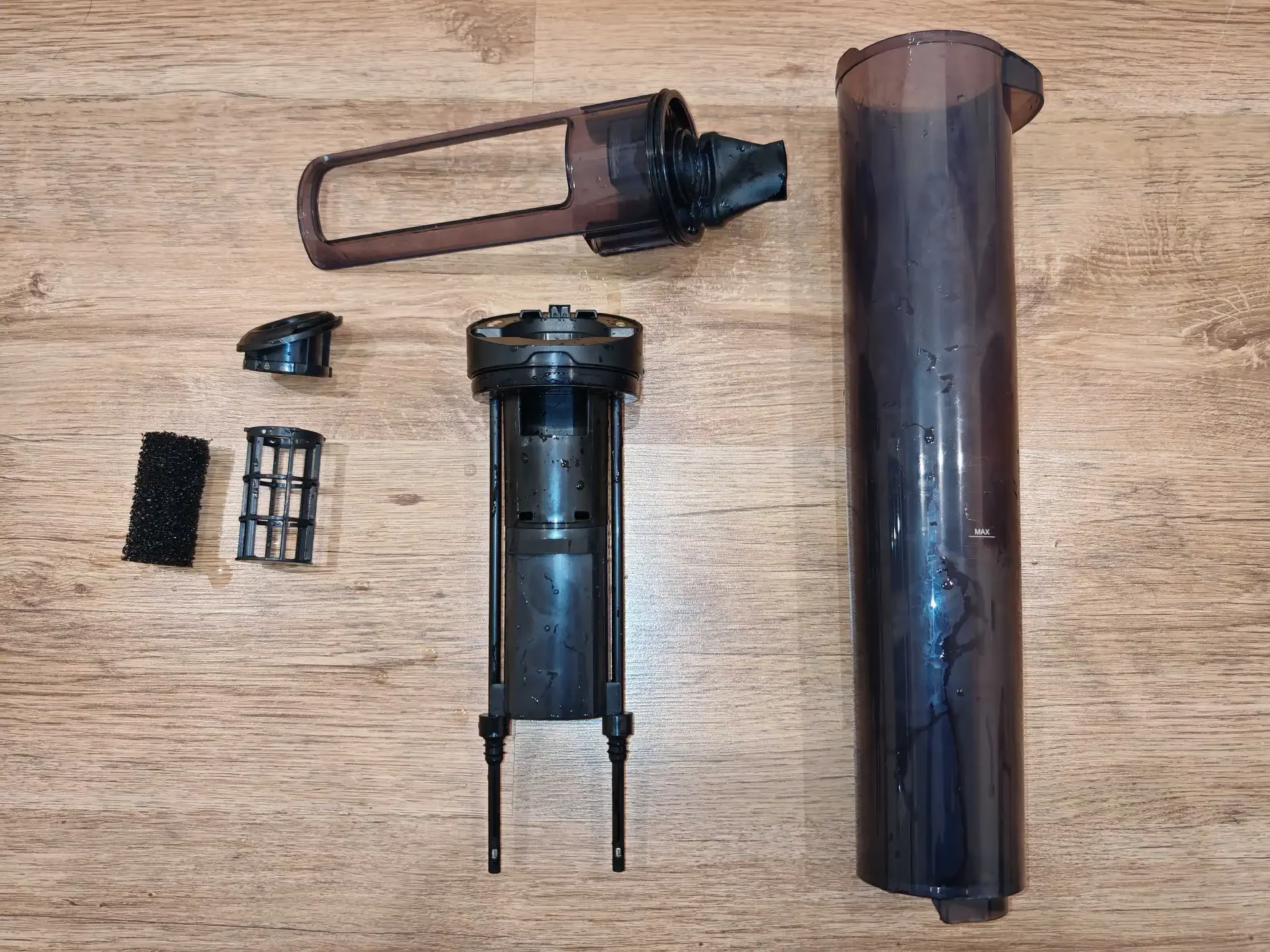 Konštrukcia Sencor S88 Aquino+ je spracovaná dobre. Výrobca použil prevažne matné plasty, vďaka čomu nebudú prípadné škrabance príliš viditeľné. Jednotlivé príslušenstvo drží pohromade dobre a ani pri intenzívnejšom používaní som nemal problém s tým, že by sa jednotlivé diely rozpojovali. Dĺžka vysávacej tyče síce nie je nastaviteľná, no zodpovedá výške priemerného používateľa.