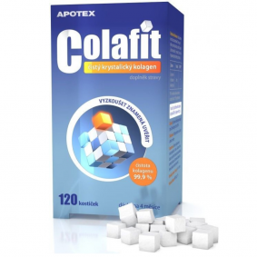 Apotex Colafit je kĺbová výživa, pri ktorej užívaní dochádza podľa štúdie Výskumného ústavu reumatických chorôb Piešťany k zlepšeniu klinického nálezu pacientov. Ide vlastne o lyofilizovaný kolagén vo forme kociek, ktorý je rýdzo prírodný (bez farbív a pridaných látok). Väčšine používateľov skutočne pomáha s bolesťami kĺbov, hoci podľa menšej časti recenzentov nenastali žiadne zmeny. Apotex Colafit sa ľahko prehĺta a je vhodný aj pre deti, ktoré by ho však radšej mali zapiť.