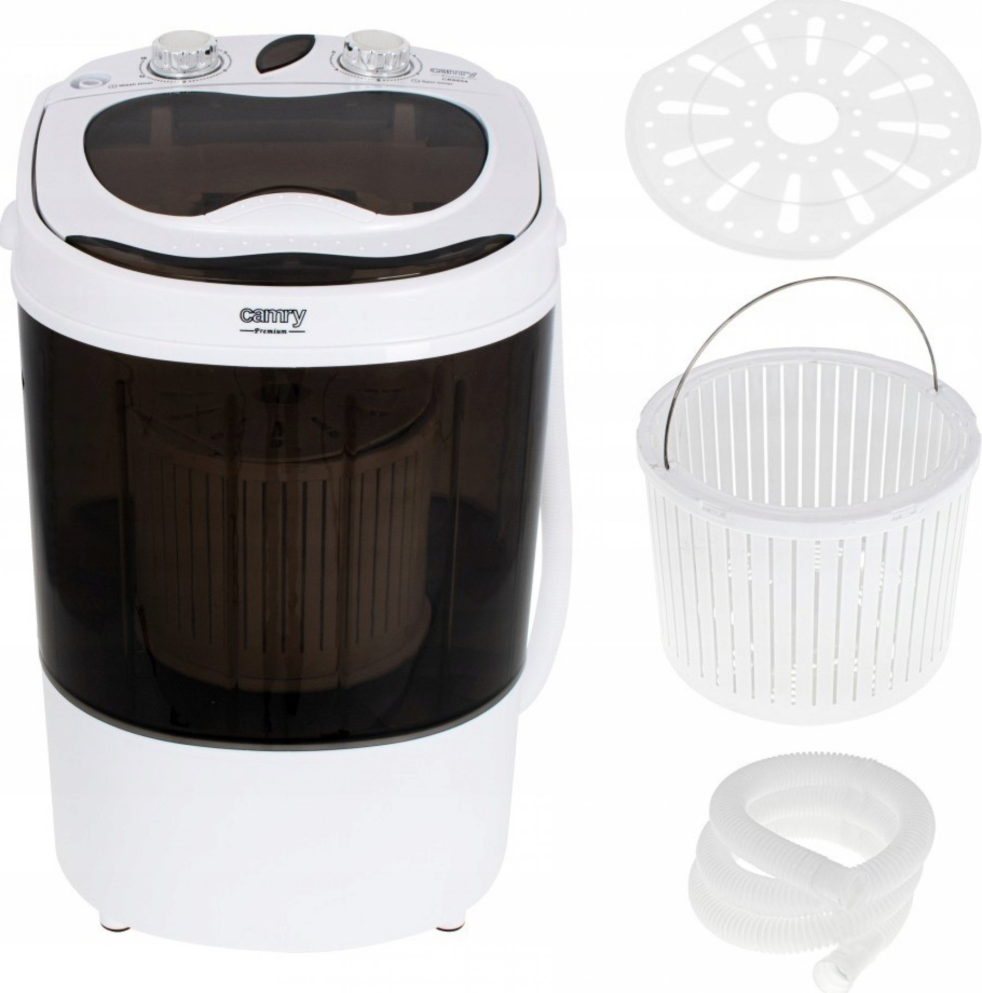 Oproti konkurenčným produktom sa táto minipráčka odlišuje priehľadným pracím košom, cez ktorý vidíte obsah vo vnútri. Nemá napúšťaciu hadicu, vo veku práčky je otvor na napúšťanie vody, cez ktorý môžete vodu aj vylievať. Prednosťou je možnosť nastavenia dĺžky pracieho cyklu až na 15 minút a dobrý pomer kapacity prania a odstreďovania.