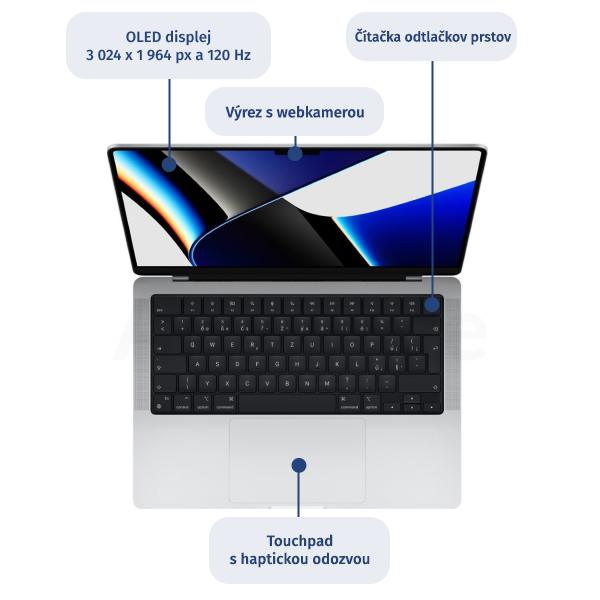 Nadštandardná dielenská kvalita spracovania je niečo, čím sa Apple pri svojich notebookoch môže pochváliť. Telo zariadenia je vysústružené z hliníka, pôsobí pevne, stabilne, nijako sa neprehýba. Na prvý dotyk cítite, že držíte v ruke spoľahlivý a luxusný produkt. Monitor má novo uhlopriečku 14,2 palcov, Apple teda robí v tabuľkách predajcov opäť neporiadok s divnou uhlopriečkou. Displej dostal rozlíšenie 3 024 x 1 964 pixelov a tvorí ho OLED panel s variabilnou obnovovacou frekvenciou až 120 Hz. Chválime, to je rozhodne nadštandard.