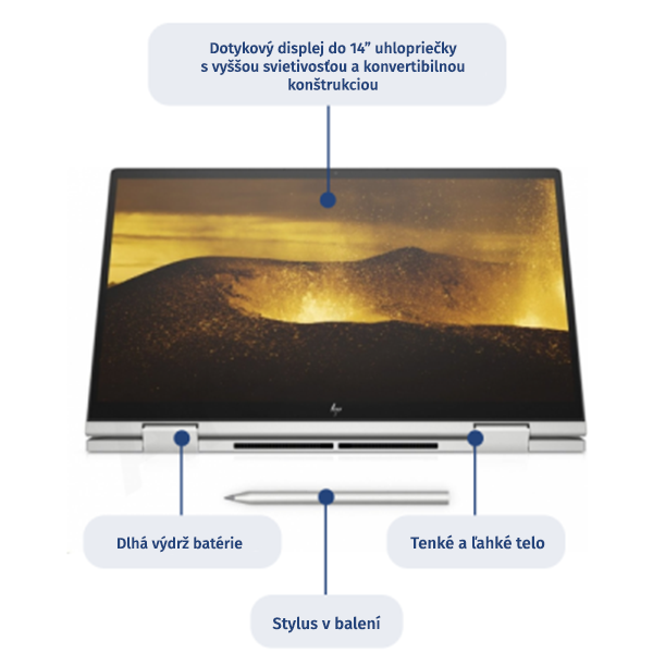 Notebook HP Envy x360 15-fe0002nc 8F016EA zaujme svojím všestranným využitím a otočnou konštrukciou, ktorá dokáže z počítača urobiť tablet. Má dotykový displej s podporou stylusu, ktorý disponuje technológiou OLED, ale má iba Full HD rozlíšenie. Telo je vyrobené z hliníka a váži iba 1,78 kg. Preto je tento stroj vhodný na časté prenášanie.