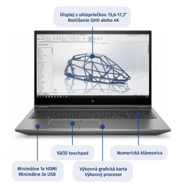 - Displej – Obrazovka by mala byť optimálne v rozmedzí 15–16 palcov. Na menšej uhlopriečke budú výkresy neprehľadné, 17 palcový notebook sa zase zle prenáša. Rozlíšenie voľte minimálne FullHD, lepšie však QHD (2 560 x 1 440 pixelov).