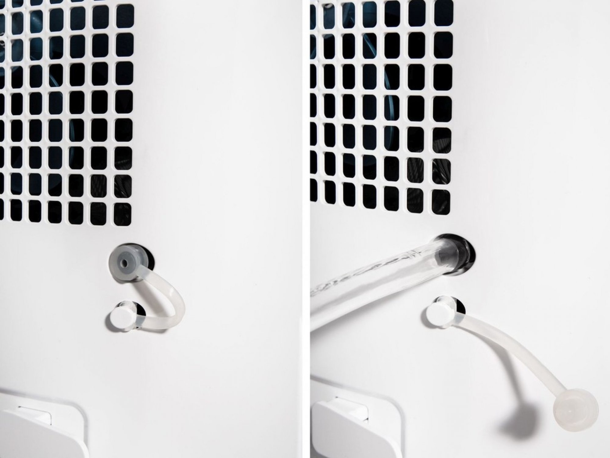 Výhodou je, že spotrebič možno pripojiť k odtokovej hadici, takže kondenzát môže odtekať priebežne, napríklad priamo do odpadu, a potom by ste sa o vylievanie zbernej nádoby vôbec nemuseli starať. Pozitívom sú aj kolieska na spodnej strane, ktoré umožňujú jednoduchú prepravu. Zariadenie váži 7,8 kilogramu, čo je priemerná hmotnosť. Ako sme už spomenuli, od tohto odvlhčovača nemožno vzhľadom na cenu očakávať žiadne pokročilé funkcie, chýba mu čistička vzduchu a Wi-Fi. Napriek tomu sú s ním používatelia veľmi spokojní, model je obľúbený pre svoj dobrý pomer ceny a výkonu.