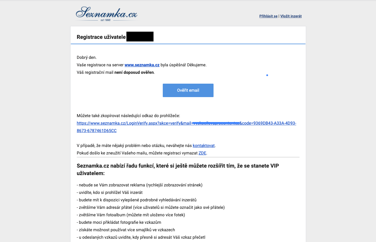 Aby ste si mohli prezerať profily ostatných užívateľov, je potrebné sa do zoznamky zaregistrovať. Zoznamky bez registrácie skrátka nefungujú. Na prihlásenie budete potrebovať obvykle iba užívateľské meno a e-mailovú adresu. Tú bude v nasledujúcom kroku tiež potrebné potvrdiť kliknutím na odkaz, ktorý vám príde do mailu. Výnimočne sa môžete stretnúť s overením podľa telefónneho čísla.
