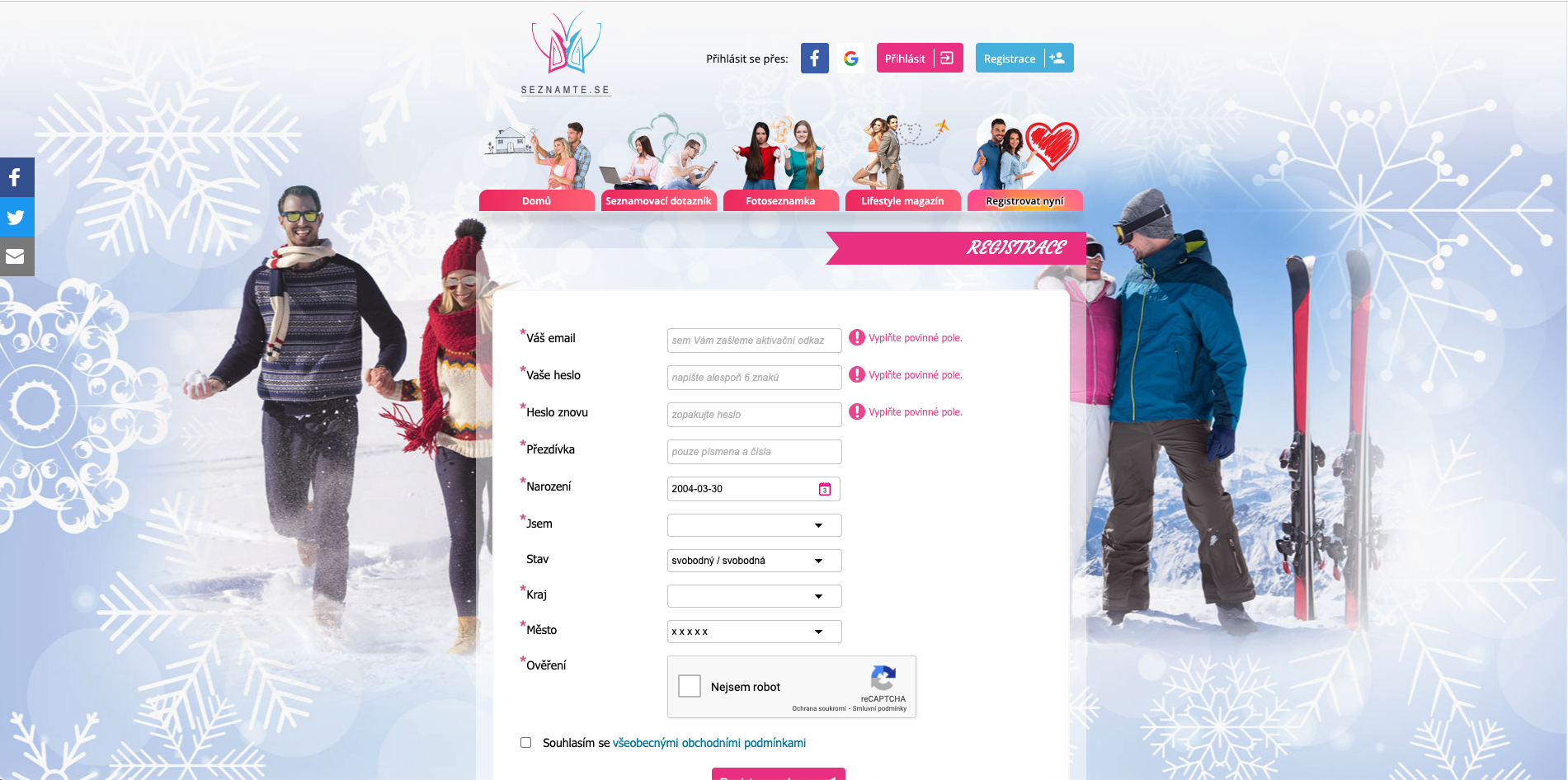 Zadarmo | Registrácia do zoznamky | |